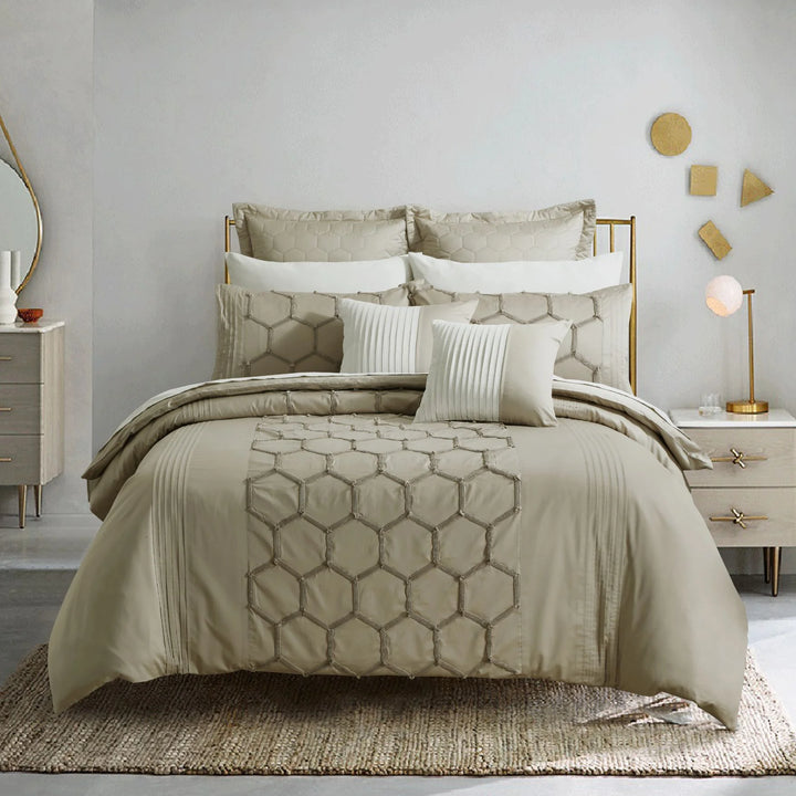 Innovative tufting techniques add stunning texture to the luxurious, high-thread-count fabric, enhancing its luscious feel.