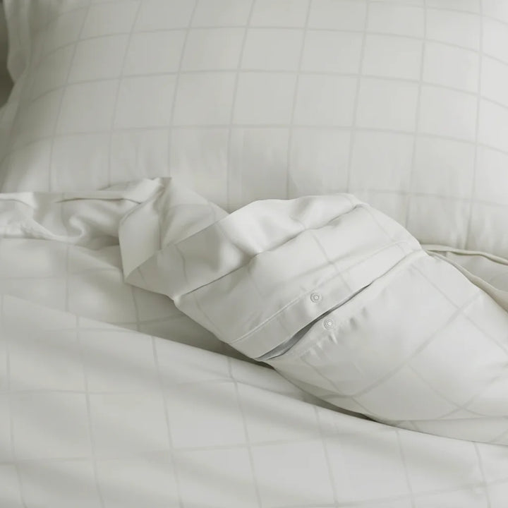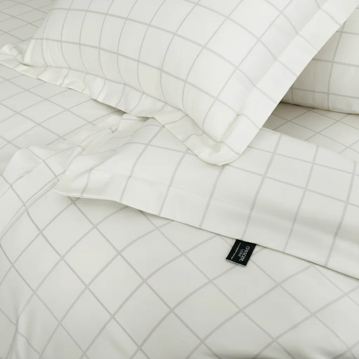 Elevate your bedroom with this luxurious white comforter set, featuring a modern grid pattern for a clean and sophisticated look. Crafted from ultra-soft, breathable fabric, it offers exceptional comfort and long-lasting durability.