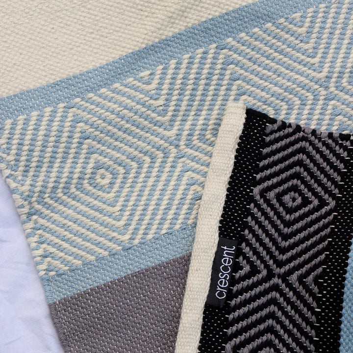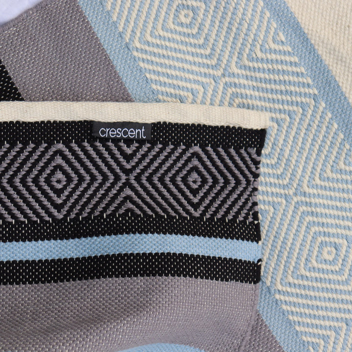 Elevate your dining experience with this beautifully crafted handmade woven cotton table runner and 6 matching placemats set. Designed with a modern yet traditional touch, this set features a stunning blend of blue, grey, and white tones with intricate geometric stripe patterns that add elegance to any dining space.