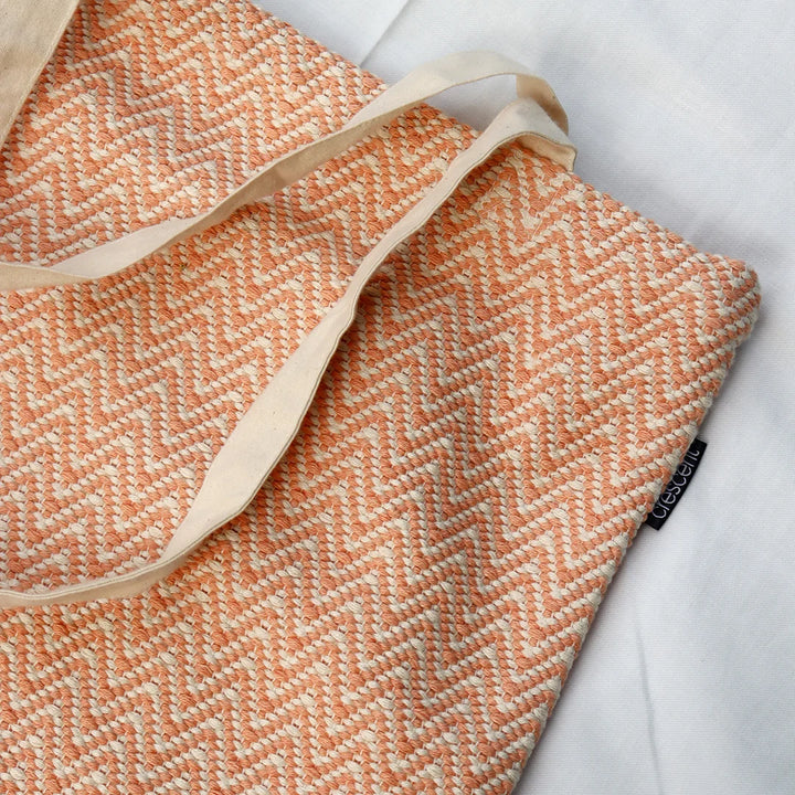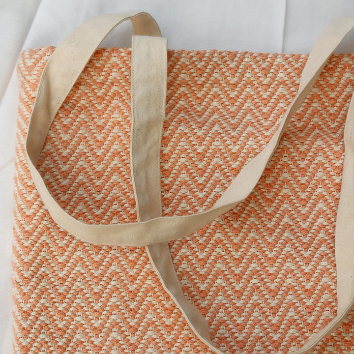The fabric showcases a subtle herringbone weave, adding rich texture and durability, while the sturdy cotton straps make it comfortable for everyday use. Perfect for shopping, work, or casual outings, this eco-friendly tote is both functional and fashionable.